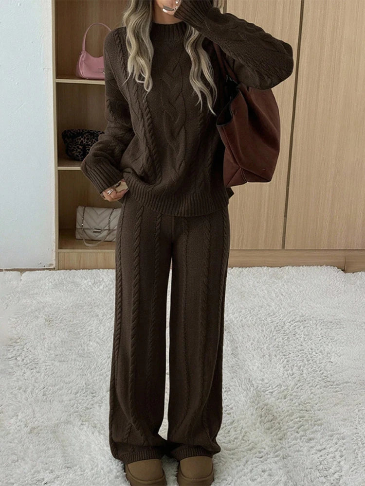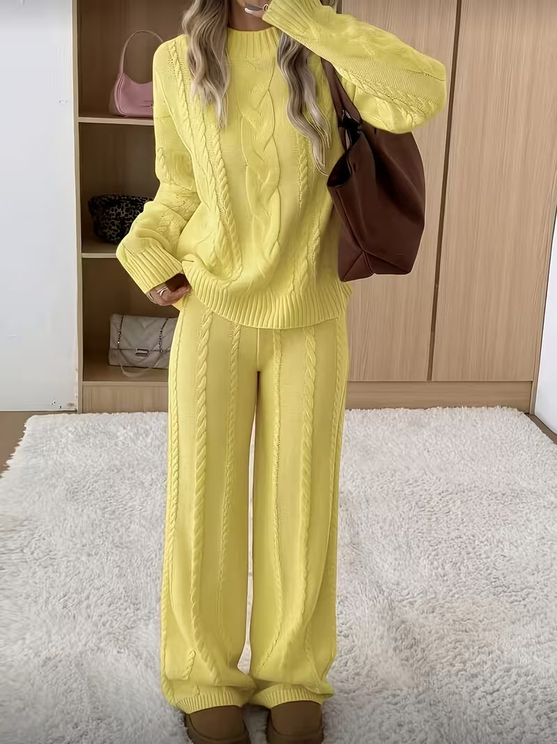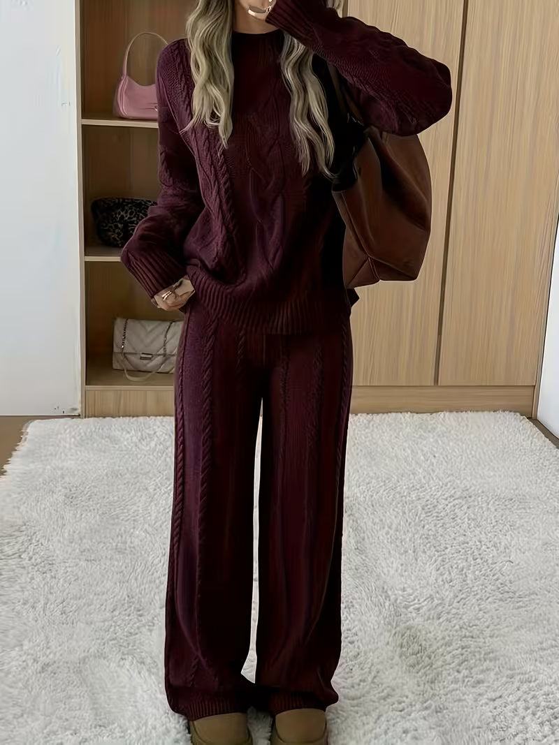 Maglia e pantaloni in maglia morbida si indossano in un attimo. Mantengono calore senza stringere, perfetti per mattine fredde o lavoro da casa, offrendo comfort continuo e look curato senza fatica.